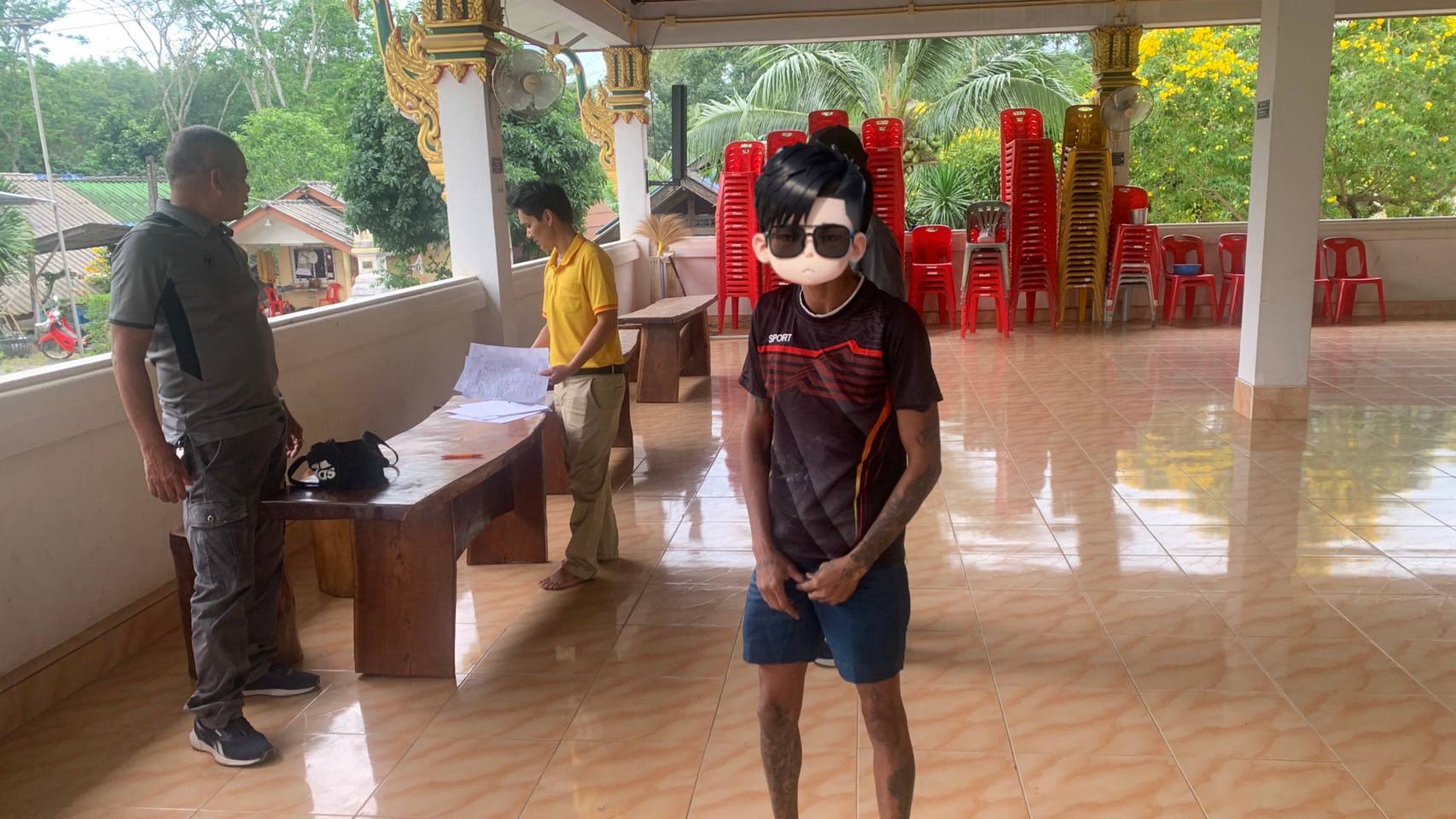 สถานที่จับกุม ศาลาการเปรียญ ภายในวัดมงคลสถาน หมู่ 10