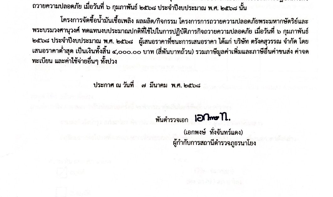 ประกาศจัดซื้อน้ำมันเชื้อเพลิง(ถปภ.สตูล) 8 มีนาคม 2568 โดย admin / ข่าวจัดซื้อจัดจ้าง,ข่าวจัดซื้อจัดจ้าง,งานการเงินและพัสดุ,ข่าวจัดซื้อจัดจ้าง,งานงบประมาณแผนงาน Facebook iconFacebookTwitter iconTwitterLINE iconLine