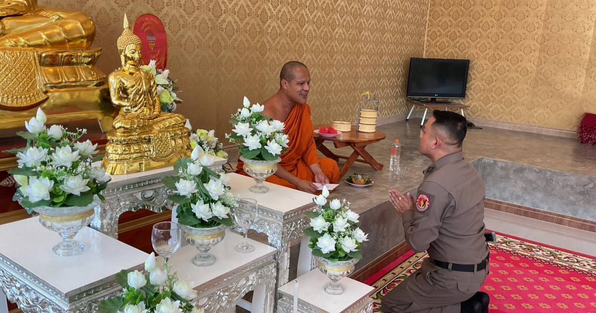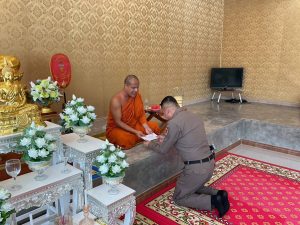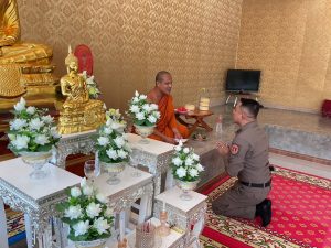 พร้อมกันนี้ ผกก.สภ.นาโยง ได้เข้าเยี่ยม กราบนมัสการเจ้าอาวาสวัดกรงทอง และได้ถวายปัจจัยแด่เจ้าอาวาสวัดกรงทอง ณ วัดกรงทอง ม.๕ ต.ช่อง อ.นาโยง จ.ตรัง