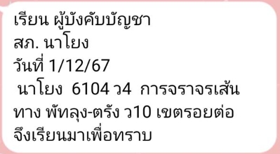 011267-จร6104 ว10 เขตรอยต่อพัทลุง 2 ธันวาคม 2567 โดย admin / ผลการปฏิบัติงานของแต่ละสายงาน,งานจราจร,จร.ธค.67 Facebook iconFacebookTwitter iconTwitterLINE iconLine