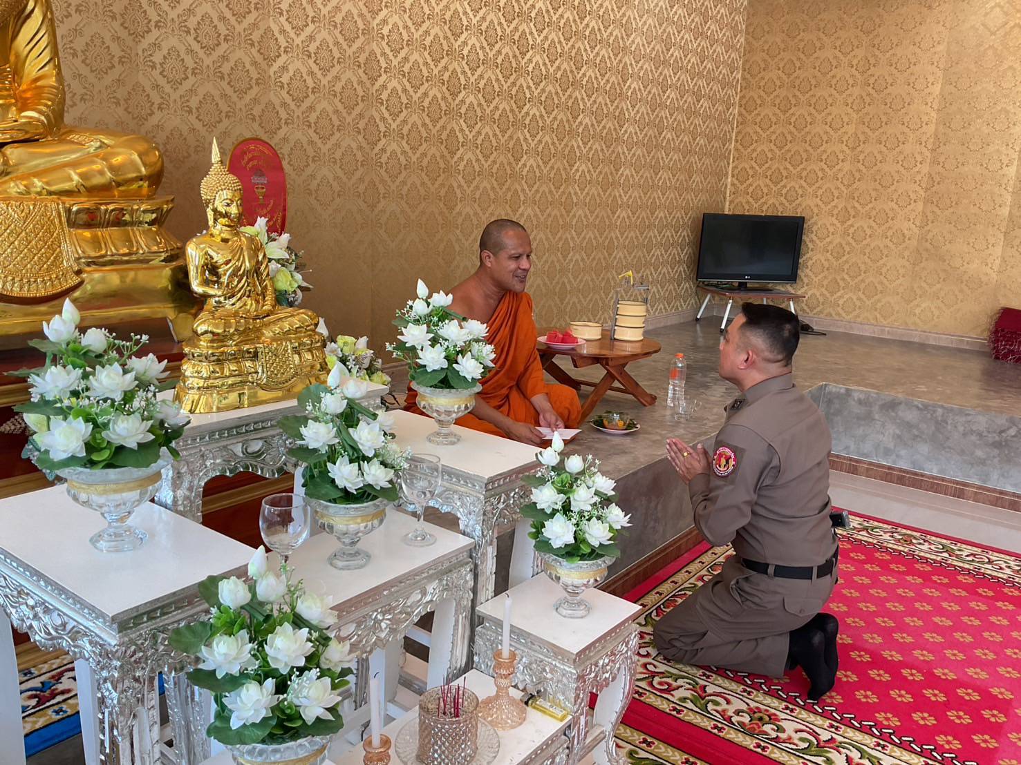 ผกก.สภ.นาโยง ประชุมเตรียมพร้อมพิธียกเสาเอกหอระฆังวัดกรงทอง