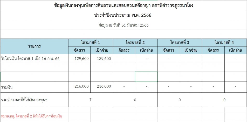 ข้อมูลเงินกองทุนเพื่อการสืบสวนและสอบสวนคดีอาญา