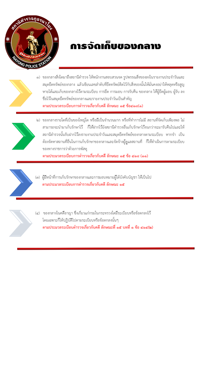 รายงานผลการปฏิบัติเกี่ยวกับการจัดการทรัพย์สินของทางราชการ ของบริจาค การจัดเก็บของกลางสถานีตำรวจภูธรนาโยง