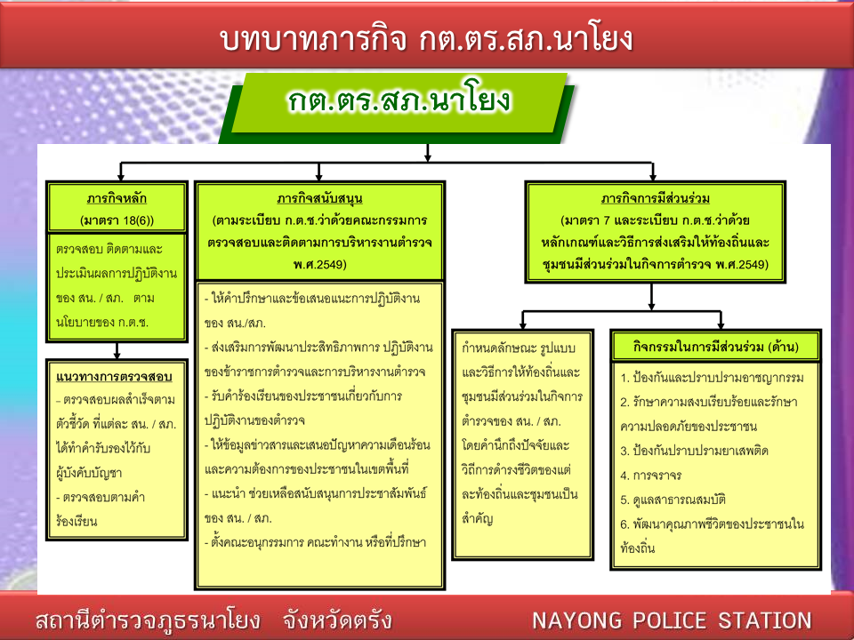 - ให้คำแนะนำและช่วยเหลือสนับสนุนการประชาสัมพันธ์งานของ สถานีตำรวจ